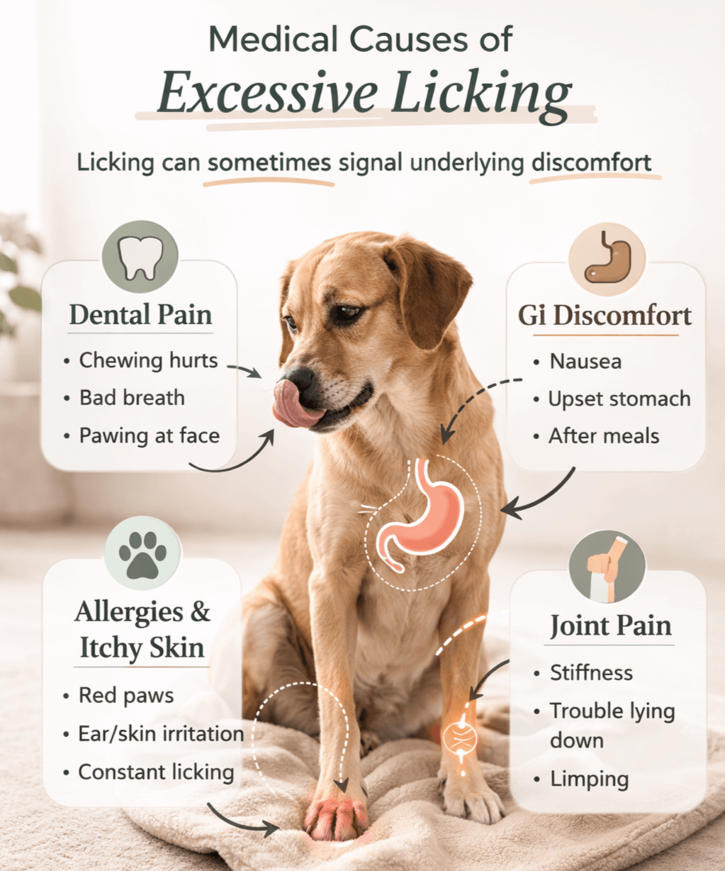 This is one of the most common “hidden” medical reasons behind persistent licking.